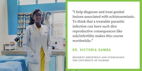 Dr Victoria Gamba is a Resident of Obstetrics and Gynaecology at the University of Nairobi, Kenya. She is a strong advocate for increased awareness and research on Female Genital Schistosomiasis (FGS) particularly its diagnosis and the impact it has on the health of women and girls in Kenya. To find out more about FGS check out the GSA's Genital Schistosomiasis Collection here.