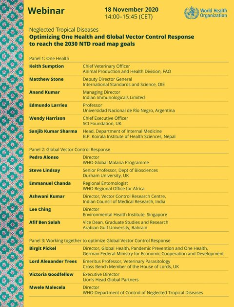 WHO webinar: Optimizing One health and Global Vector Control Response to reach the 2030 NTD Roadmap goals